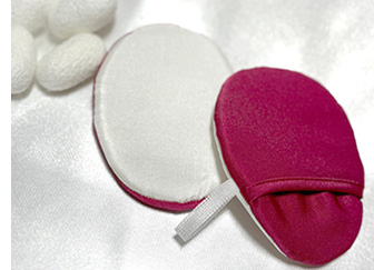 シルクのパフは洗顔時にずっと使っていました。これで洗顔の仕上げにスッとお肌を撫でるだけで、ホントのつるんつるんのお肌になって、そりゃもう化粧水もぐんぐん浸透してくれます。 |