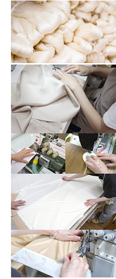生地の裁断から縫製まで全ての工程を、京都の工場で作っています。